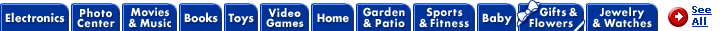 Electronics Photo Center Movies & Music Books Toys Video Games Home Garden & Patio Sports & Fitness Baby Gifts & Flowers Jewelry & Watches See All
